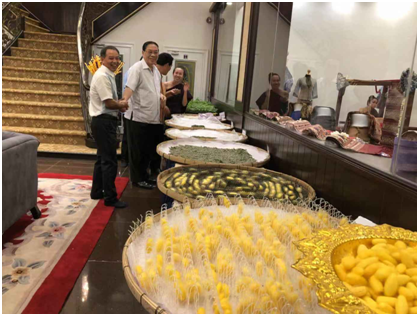 2018年11月16日至22日,应老挝有关方面邀请南通纺织丝绸产业技术研究院“高效集约化现代养蚕关键技术转移转化示范项目”暨“中老绿色丝绸中心蚕桑示范园”项目组参加了老挝一年一度的塔銮节盛会。塔銮节是老挝万象市规模最大、场面最隆重的传统宗教节日。项目积极响应国家“一带一路”战略倡议,发展新“丝绸之路”。通过以饲料代替新鲜桑叶养蚕,节约人力成本,提高桑蚕养殖的生产效率,在国内外率先实现养蚕现代化的转化示范,也为国内蚕桑丝绸生产拓展建立海外桥头堡。《中老绿色丝绸中心蚕桑示范园》位于老挝国首都万象市塞塔尼县萨帕卡农村(Saphakhanong village, Xaythanydistrict, Vientiane municipality),占地约10公顷,由开元官方网站、老挝女双手公司、苏州大学和老挝国家科技部等单位合作共建,并得到老挝苏州大学等单位的大力支持。 中方融合了传统技艺与现代科技的“江苏现代蚕桑生产过程”展厅,吸引了众多市民参观。